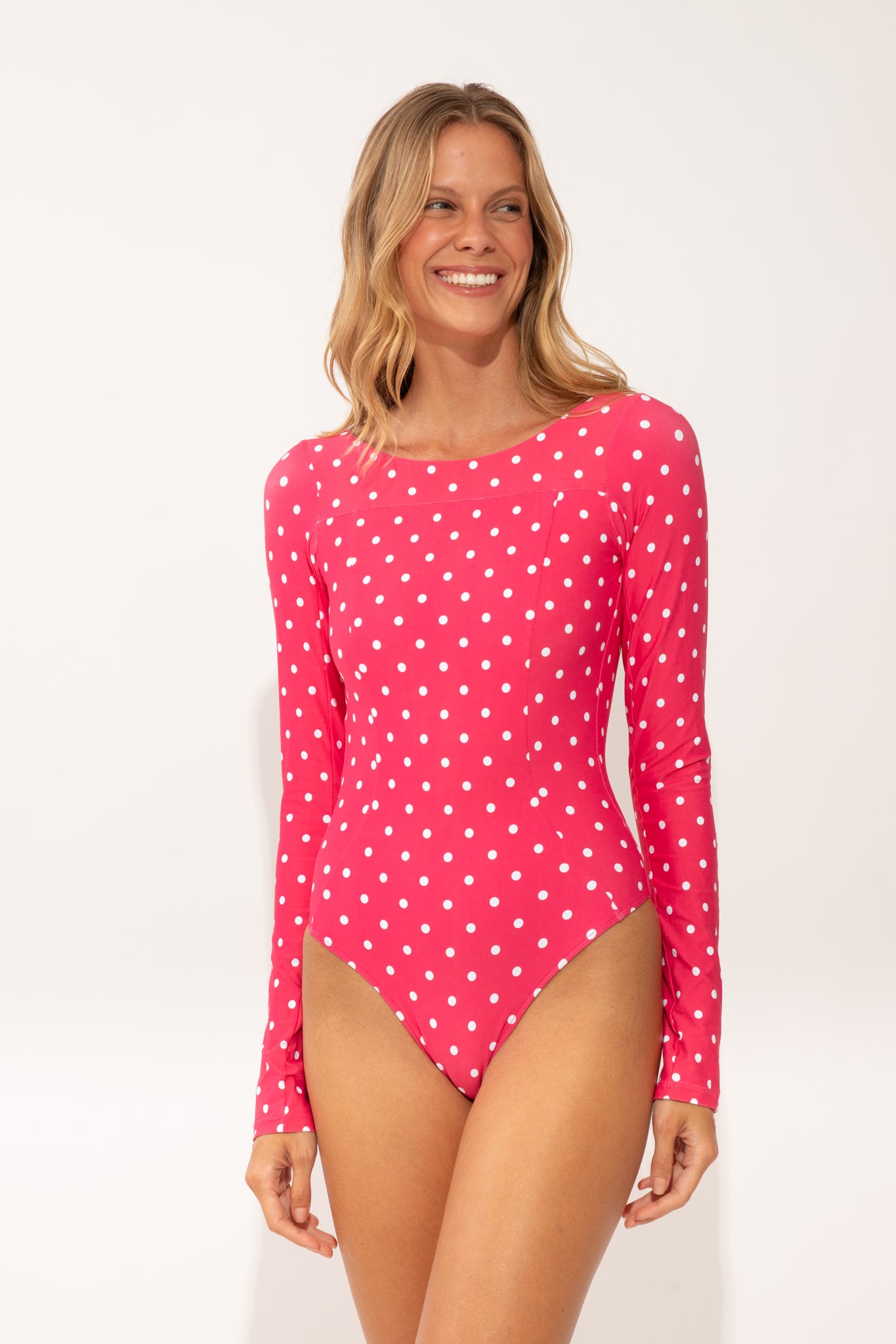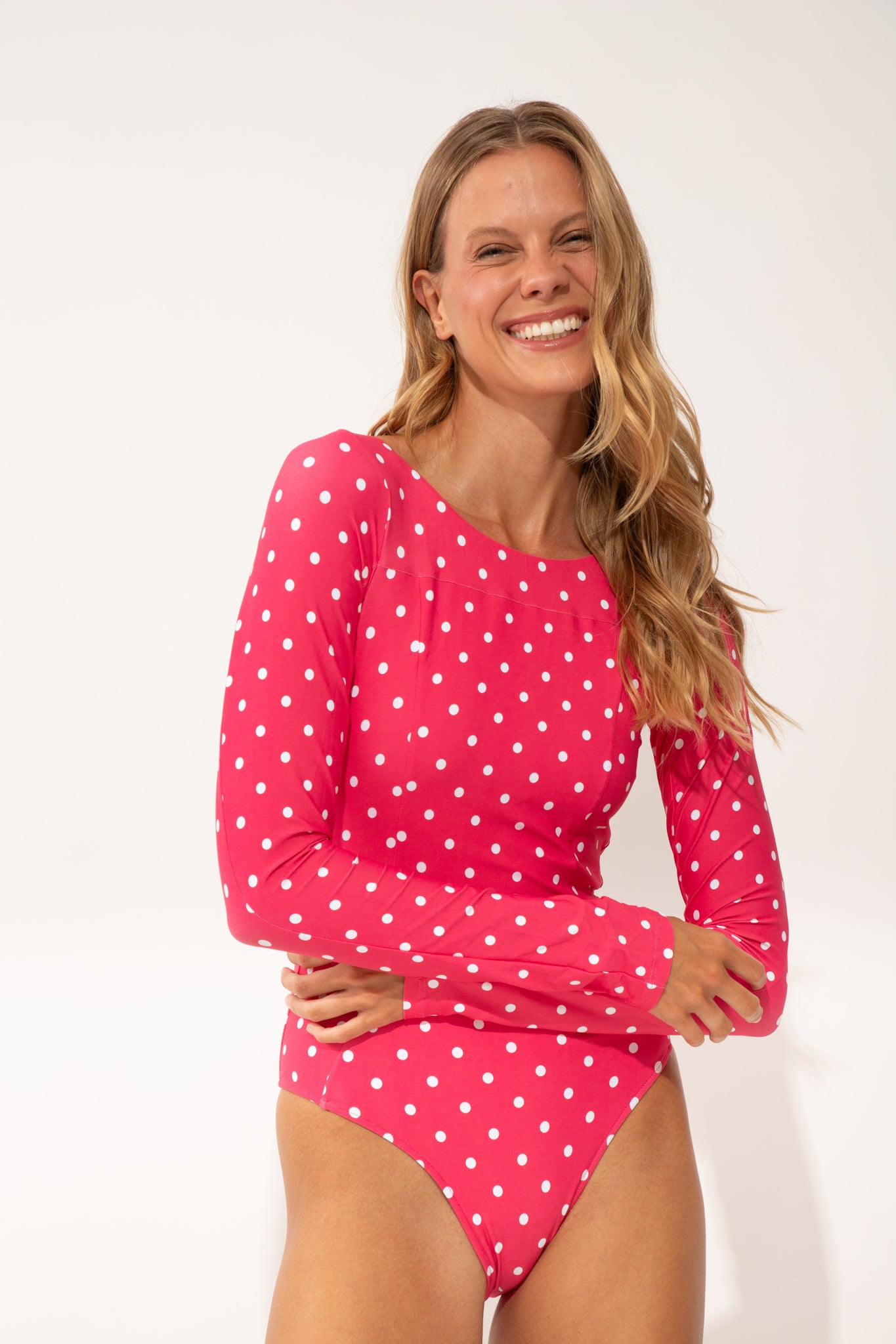 Claire is wearing a size S. Model's Measurements: Height 174cm, Bust: 89cm, Hips 95cm, Waist 61cm